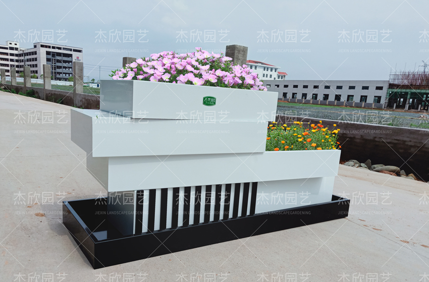花箱的風(fēng)格表現(xiàn)為現(xiàn)代風(fēng),與現(xiàn)代城市風(fēng)格融合無(wú)間
