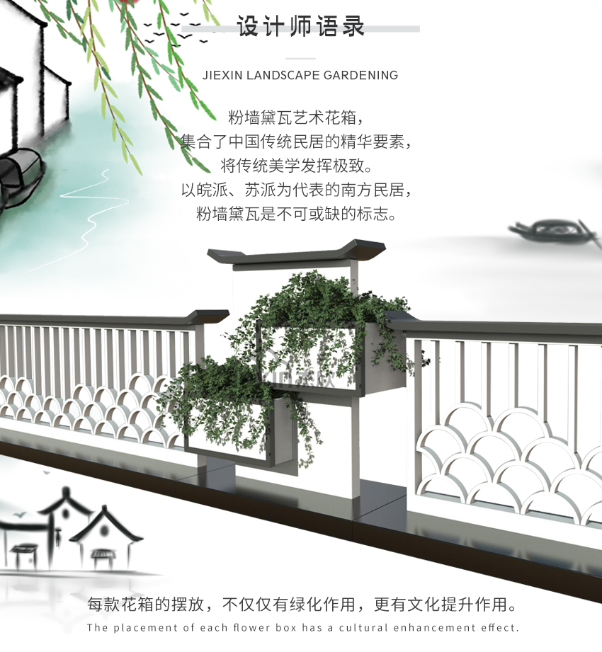 設(shè)計(jì)師從江南古建的線條與構(gòu)思中獲得靈感,以簡潔明朗的線條、溫和如水的氣質(zhì),通過色彩濃淡、光影變化、長短對照的綜合考量,平添了幽雅靜謐又怡然自然的道路空間美學(xué)。