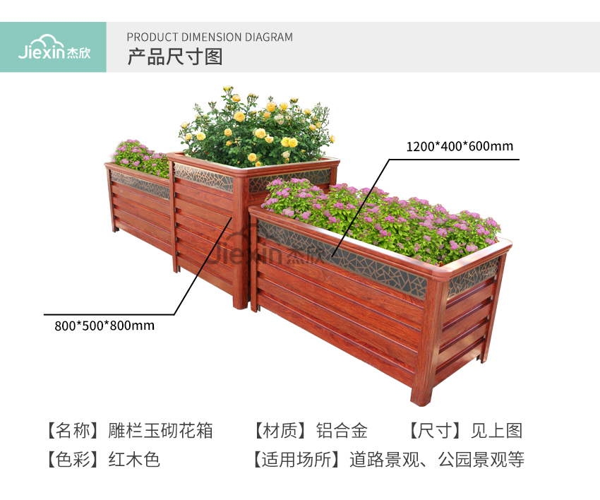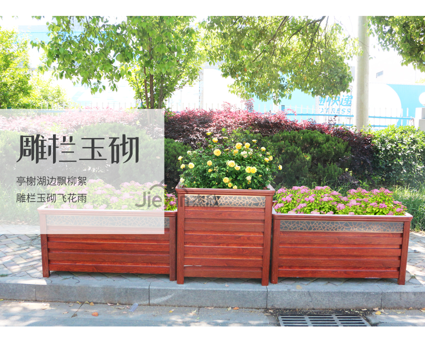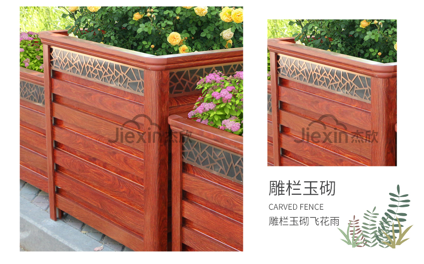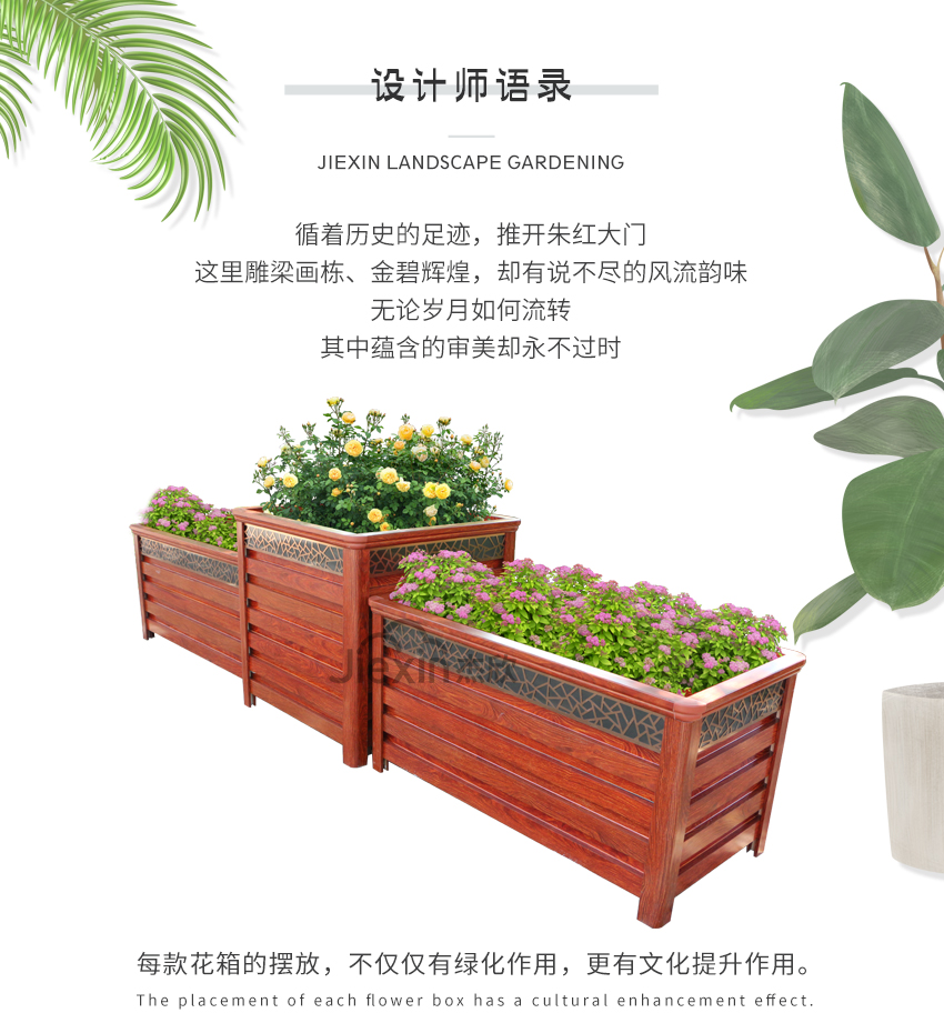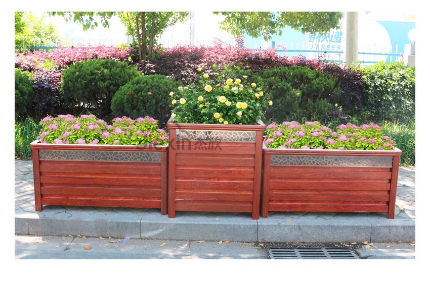 紅木色鋁合金花箱讓人想到城市的文化、想到古城、朱門。