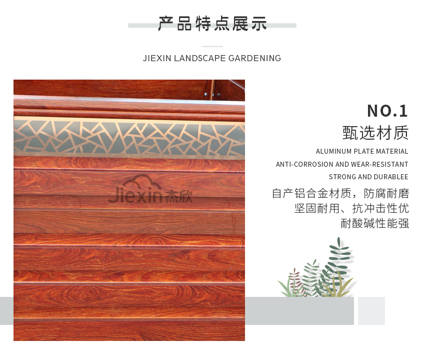 鋁合金花箱的美感,在于木紋。木紋看似簡單,卻也有無窮變化。