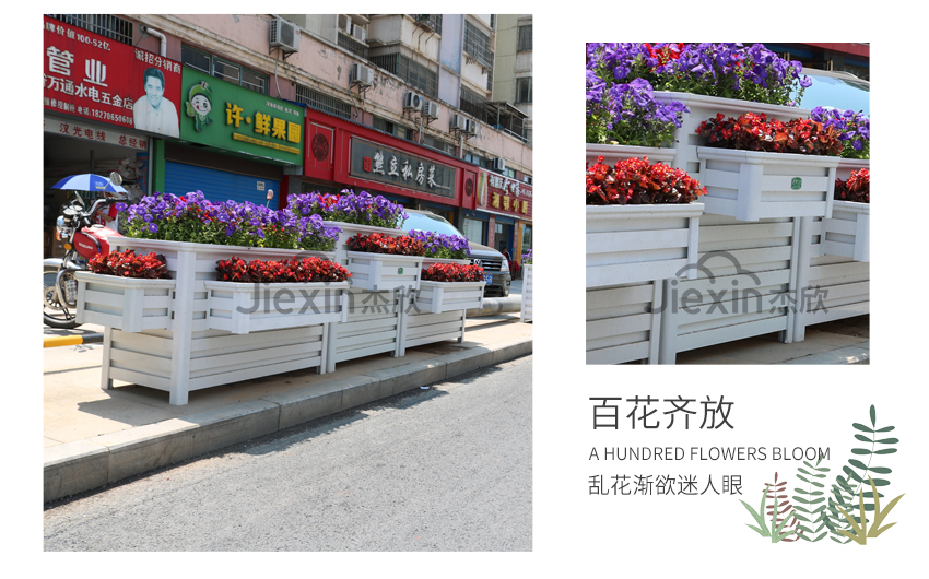 組合花箱的造型獨(dú)特,一個(gè)個(gè)小花箱裝點(diǎn)的街道春光燦爛、鳥語花香。