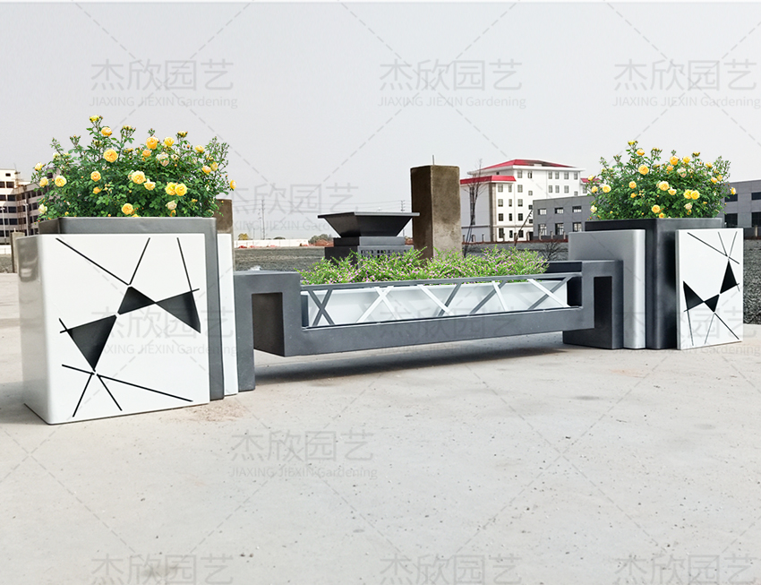 灰色主體結構,裝點上現(xiàn)代感十足的幾何圖案,充滿了科技感和趣味。這款花箱富有美感的同時,充滿了現(xiàn)代風情和理念。
