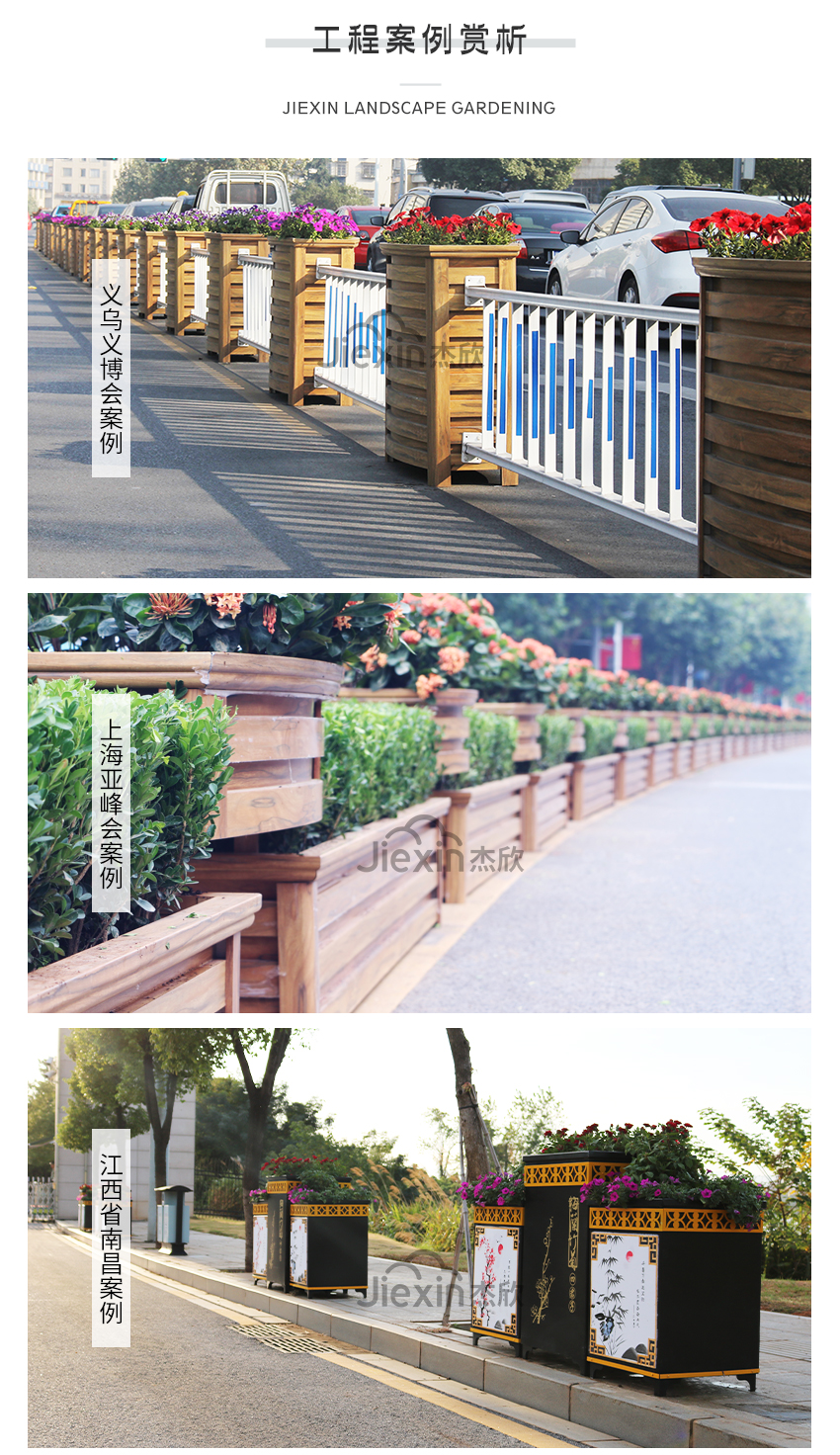 既有常規(guī)的組合花箱,也有造型別致的組合花箱