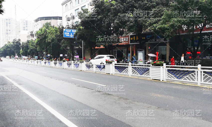 隔離花箱護欄在城市道路中使用的很多。許多城市道路都用花箱護欄做隔離用。主要有以下幾個原因。第一,道路隔離帶窄,比較適合不占地方的花箱護欄。第二,隔離花箱護欄的形式比較美感,綠化美化效果好。
