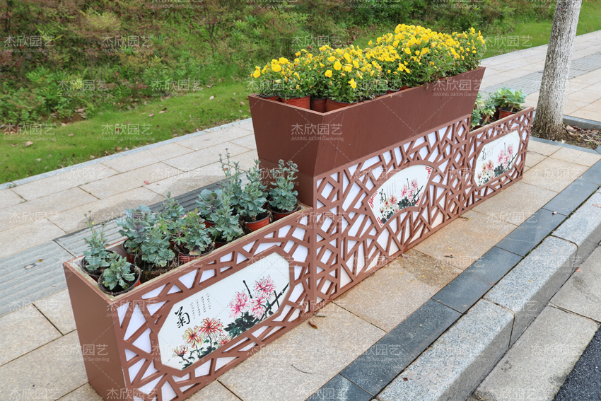 常規(guī)的PVC組合花箱以簡潔為特色,適應(yīng)多種場景使用。而特色PVC組合花箱以文化元素為特色,采用多種特色工藝,呈現(xiàn)出豐富的花箱造型。