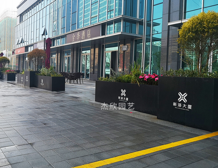 不知道大家在CBD中心里有沒有注意到過不銹鋼花箱,花箱光亮無比,可以映出人影兒。這些呢,就是早幾年非常流行的不銹鋼花箱,造型是比較少的,圓的直的梯形的,顏色也比較少,黑白灰加金。商務(wù)廣場也容易見到這種不銹鋼花箱。