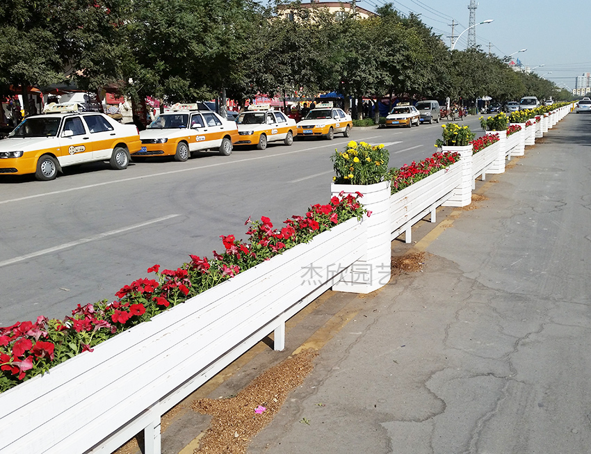 說到道路綠化,就不得不提花箱。花壇的占地寬度大,花箱的寬度則可以定。除此之外,花箱和花壇的功效等同?;▔氖┕すこ塘看?,而花箱則很便利,成品擺放,快速成景。