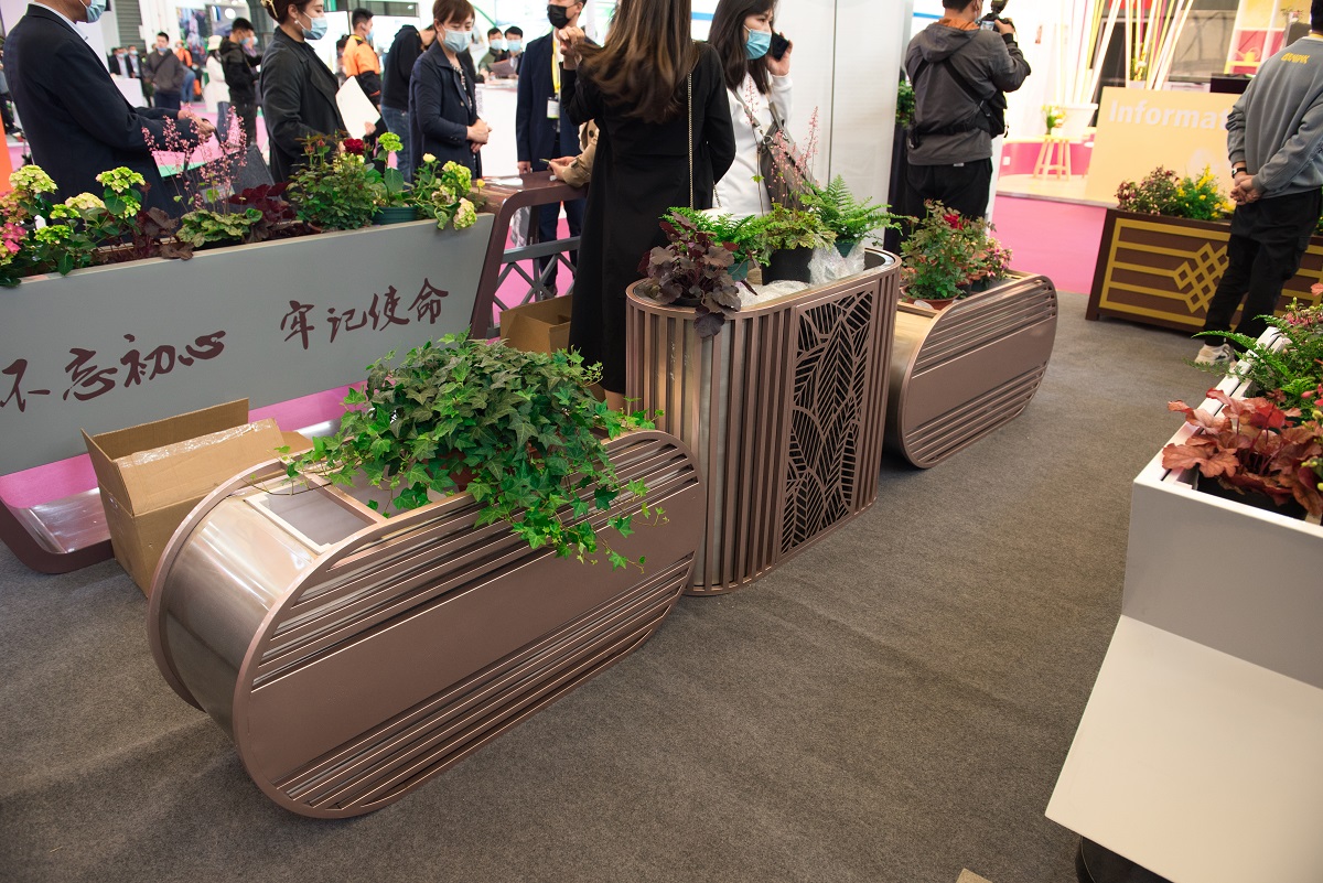 此次展會(huì)展示的鈑金系列花箱,使用工業(yè)級(jí)材料打造城市專屬花箱,防水防污防磨防撞,防腐性能優(yōu)越?;ㄏ浣?jīng)過彎圓、剪板、折彎、焊接、打磨、氟碳噴漆,打磨出外觀精致、細(xì)膩,剛?cè)岵?jì)的城市風(fēng)采。