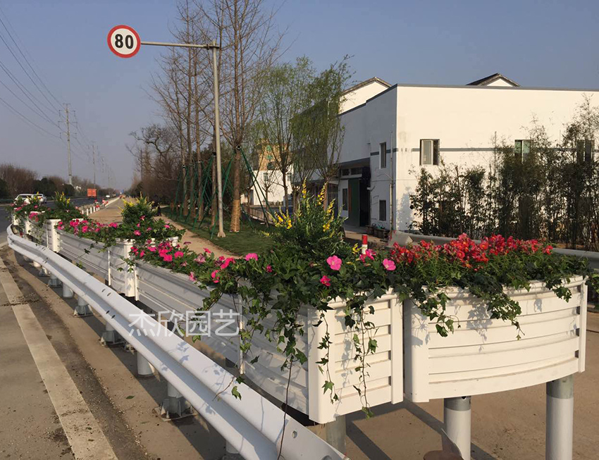 護(hù)欄花箱不同于組合花箱,護(hù)欄花箱具有道路隔離景觀作用。組合花箱的作用集中在街道景觀。護(hù)欄花箱一般由護(hù)欄和花箱組成,花箱以PVC、鋁合金為主,護(hù)欄以鋅鋼、鋁合金為主。