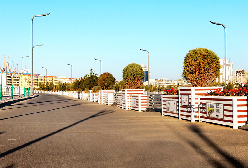 道路組合花箱可以運(yùn)用在城市中央隔離帶、機(jī)非隔離帶,提升道路景觀效果。