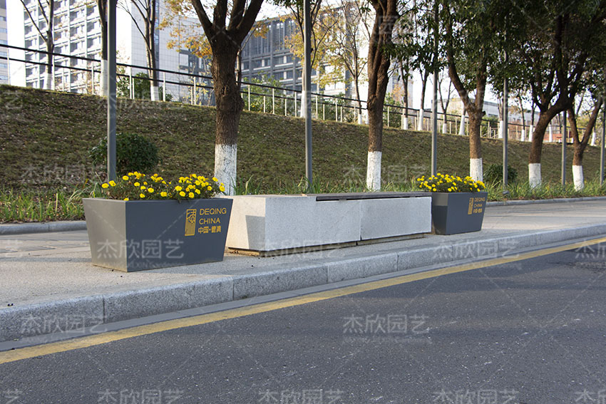 不銹鋼成品花箱經(jīng)典款,選取的是深色漆面,燙金文字,大氣磅礴,氣象萬千,現(xiàn)代城市風(fēng)格撲面而來。