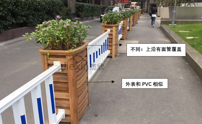 首先是道路隔離花箱護(hù)欄中的PVC材質(zhì),PVC是由板條拼接而成,一般來說,大家看到的常規(guī)PVC花箱,都是板條固定要一個板上,因此側(cè)面看有凹凸面,凸出來的就是板條固定上去。