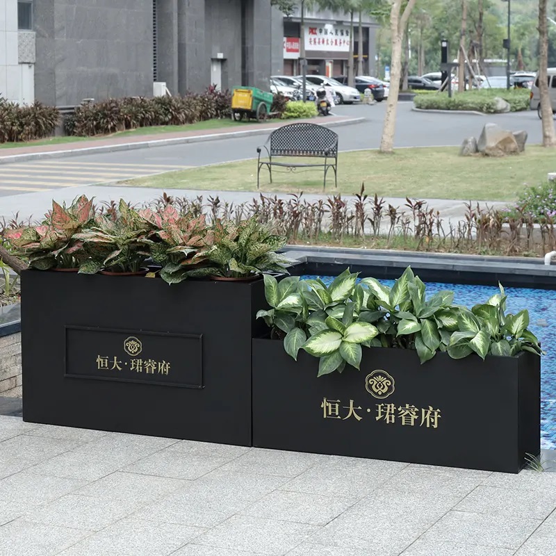 鐵藝花箱,近年來有頗受歡迎。一來,鐵藝的造型美觀大氣,二來價格也不高。鐵藝花箱還可以根據(jù)場景定制,簡明的logo更加凸顯了都市風格。