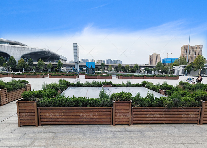 鋁合金花箱不褪色、不破損,可在戶外使用二十年,免后期維護(hù),顏色多樣,其中木紋鋁合金花箱以逼真的肌理著名,成為城市靈動(dòng)的風(fēng)景線。