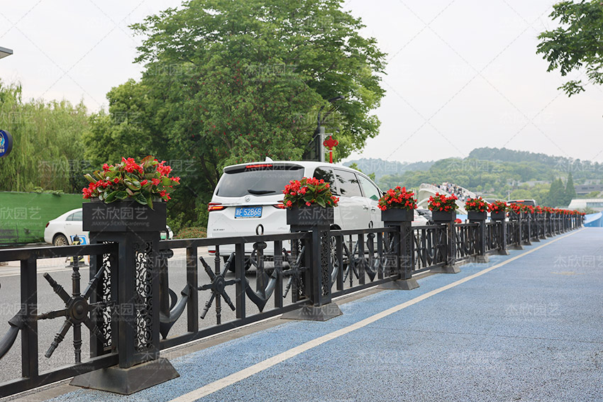道路隔離護欄便于景區(qū)管理,優(yōu)化出行,草花布置,有利于提升場景的美觀度。