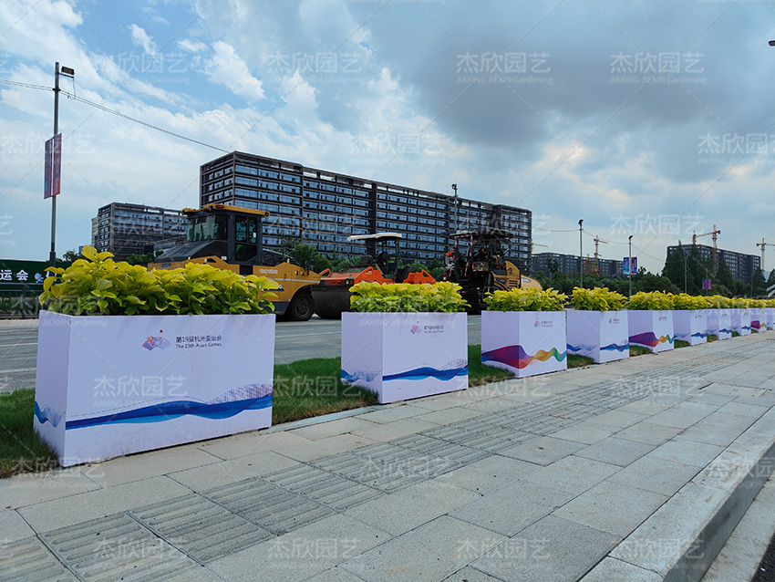 箱體由PVC構(gòu)成,外觀圖案以UV打印,栽植綠卉,勃勃生機(jī)、清爽襲人。一路望去,亞運(yùn)氣息撲面而來(lái)。