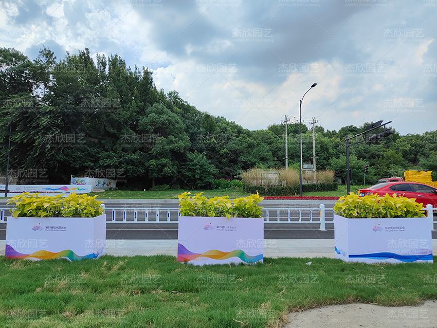 “潮涌”主題花箱以線條藝術凝練出亞運精神,包含著杭州文化與亞運精神的結合,代表著第十九屆亞運會的精神凝聚力。