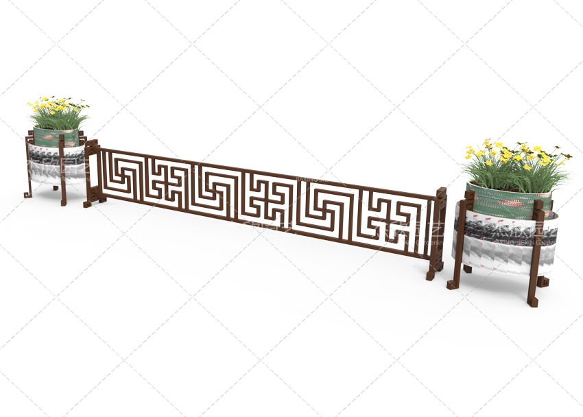 護欄的造型復雜,因為花箱四底腳的融入,顯得和諧