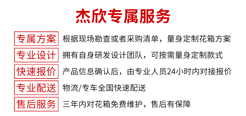 質(zhì)量要點(diǎn):全鋁材質(zhì),堅(jiān)固耐用,防腐耐磨,花箱鏈接緊密,強(qiáng)度高,承重大,使用多年不會破損?;ㄏ浔砻鏌徂D(zhuǎn)印成膜,色彩清晰自然,不會褪色。