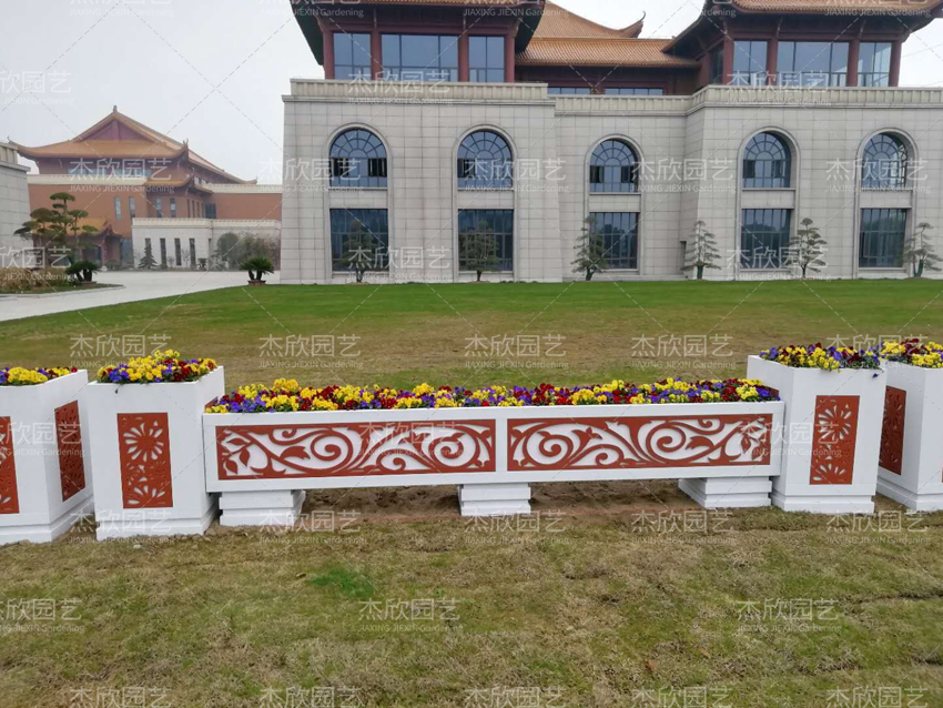 pvc花箱的柔韌性佳,加工性能強,能根據(jù)需要定制圖案。PVC花箱外部雕刻細膩,色澤一致,圖案美觀。適合道路美化工程。