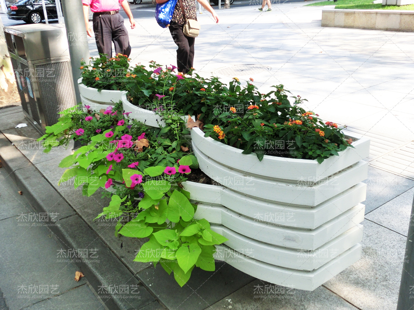 藝術花箱能夠展示出街道的美景?;⌒位ㄏ溆泻軓姷脑煨透校咨幕ㄏ渫庥^,搭配綠植和花卉都很好看!還能有垂墜的視覺感!給行人帶來如沐春風的感覺。