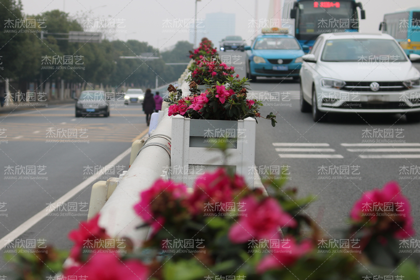 橋梁中央隔離花箱主要為了隔離車道,同樣采用鋁合金材質,高強度防撞,紅木色花箱搭配綠植,景觀效果好。