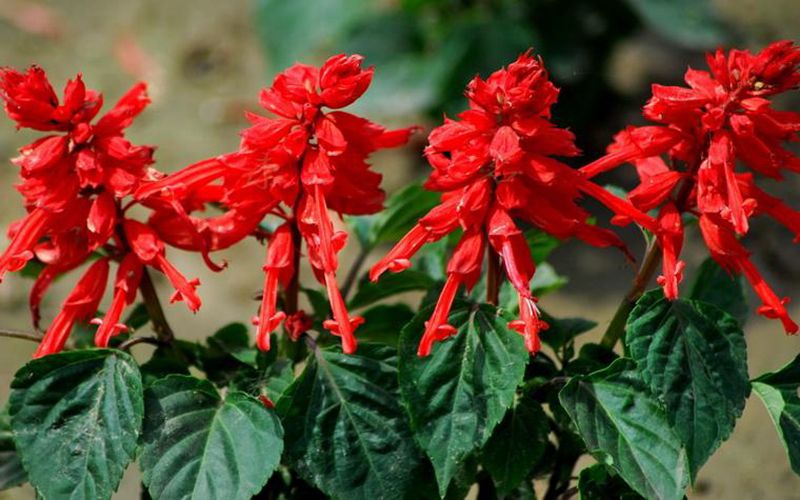 一串紅,又稱爆仗紅、象牙紅,為唇形科鼠尾草屬形植物。花序修長,色紅鮮艷,花期又長,適應(yīng)性強(qiáng),為中國城市和園林中最普遍栽培的草本花卉。