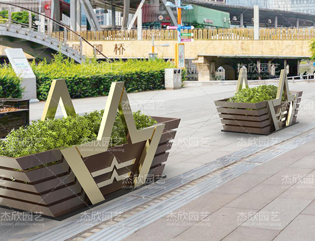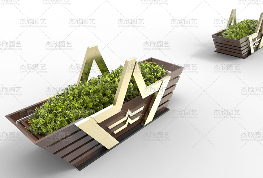 這款花箱將五角星的元素結(jié)構(gòu)重組,大氣方剛。兩側(cè)箱體猶如翅膀煽動徐徐上升,象征我國軍力強(qiáng)盛發(fā)展。