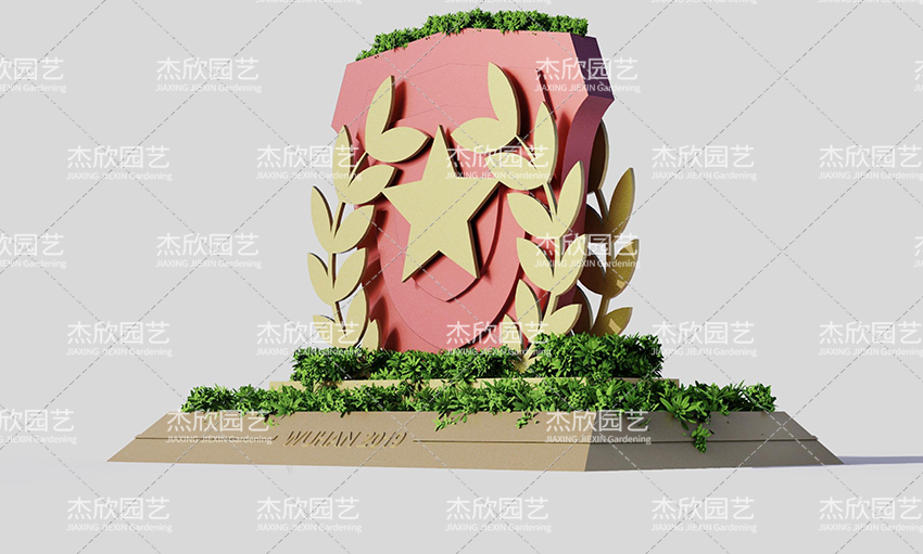 這款花箱線條硬朗,整體造型挺拔,符合軍人剛硬形象,體現(xiàn)軍旅文化,元素取自軍人臂章均有的麥穗、星星和臂章外型,與軍運會主題相呼應(yīng)。