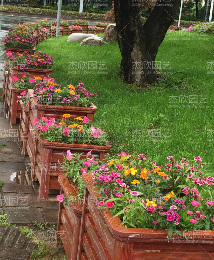 公園名貴樹(shù)種邊,可以擺放花箱,起到隔離作用。也可以起到美化作用。